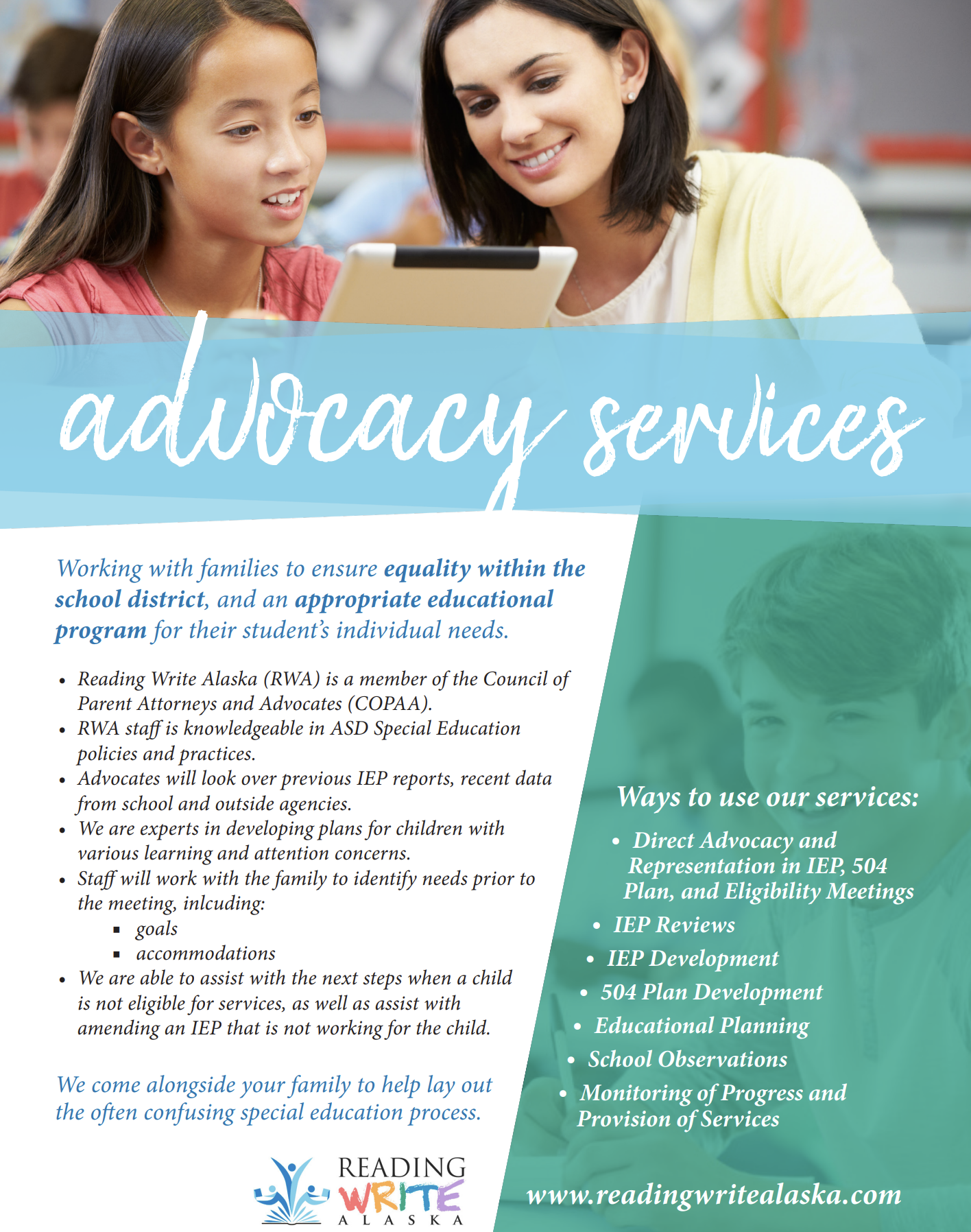 - Direct advocacy and representation in any or all school meetings including student support team meetings, consent for initial testing meetings, eligibility meetings, IEP meetings, Triennial Evaluation meetings, and 504 Plan meetings.
