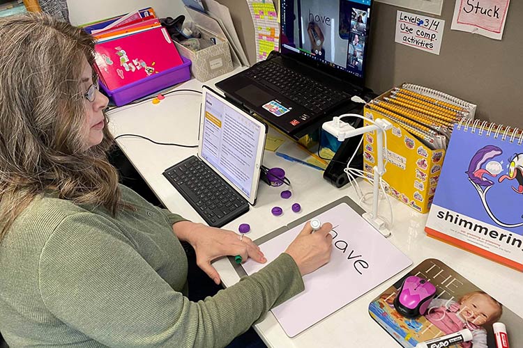 Teletherapy sessions are very similar to traditional speech therapy sessions with one major exception. Instead of sitting in the same room, clients and clinicians interact via live video conferencing. It is an effective approach that allows us to serve areas outside of our geographical location. We are also able to provide many of our tutoring services via telepractice.